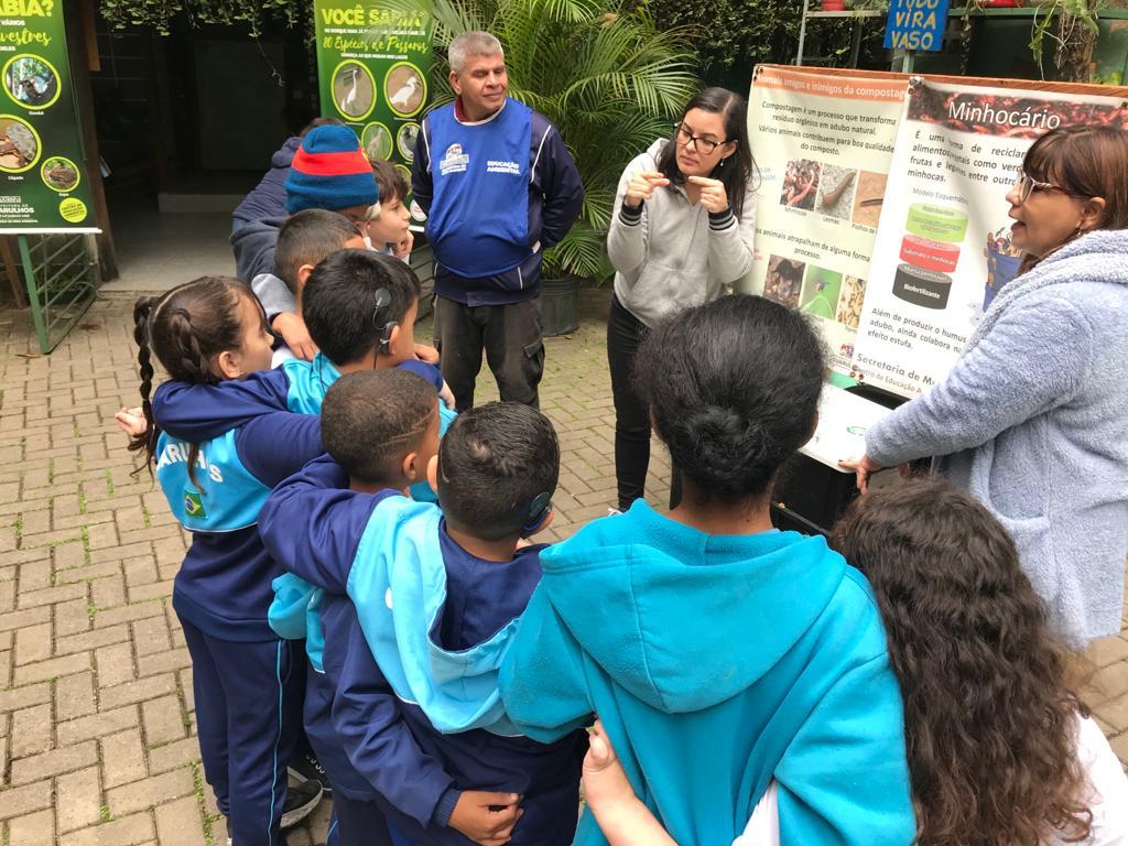 Na aula ao ar livre, com o auxílio de professores especializados em Língua Brasileira de Sinais (Libras), a turminha conheceu o minhocário do Viveiro Educador, onde aprendeu a relevância desses pequenos animais para o equilíbrio ecológico e também para a produção de adubo orgânico.