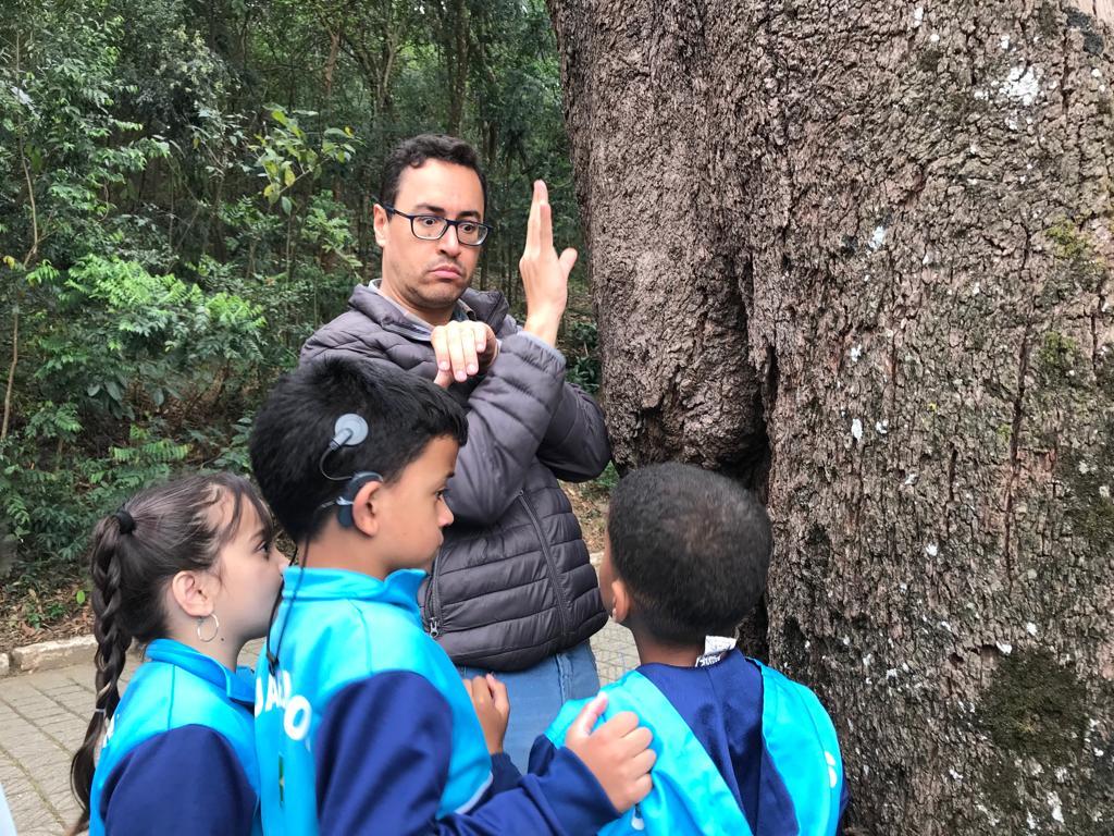 Nesta segunda-feira (12) o Centro de Educação Ambiental do Bosque Maia realizou uma ação especial para crianças com deficiência auditiva alunas da sala para surdos da Escola da Prefeitura de Guarulhos (EPG) Crispiniano Soares.