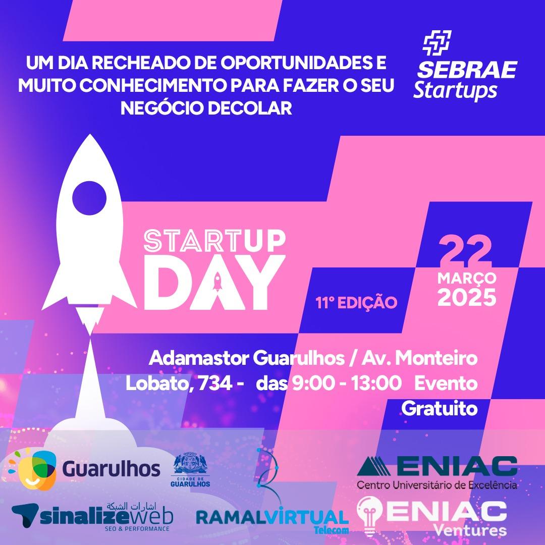 No próximo sábado (22) será realizado o Startup Day, evento idealizado pelo Sebrae Startups que acontece simultaneamente em todo o Brasil. Em Guarulhos, a iniciativa acontecerá com o apoio da Prefeitura por meio da Secretaria de Desenvolvimento Científico, Econômico, Tecnológico e Inovação (SDCETI).