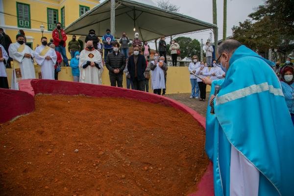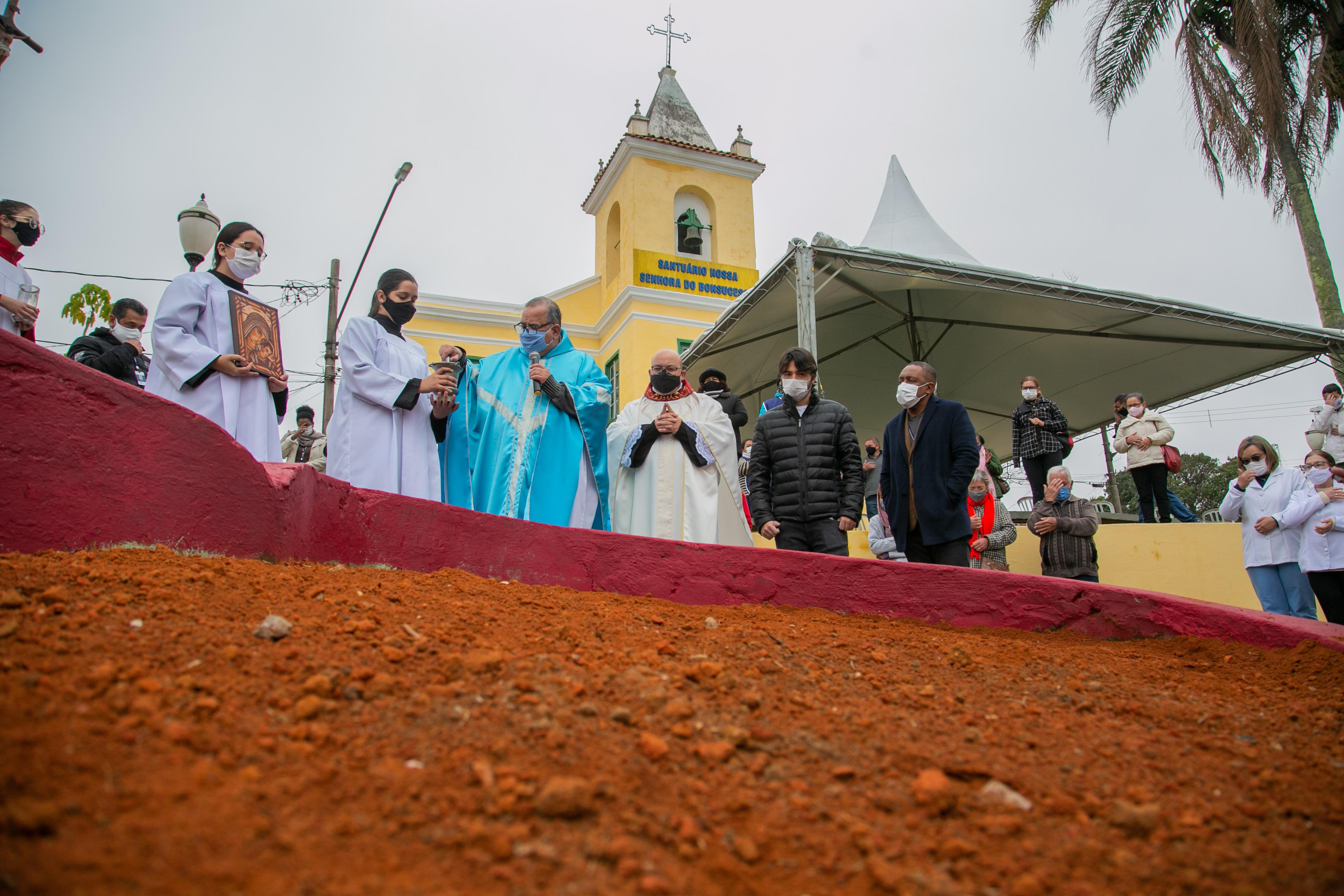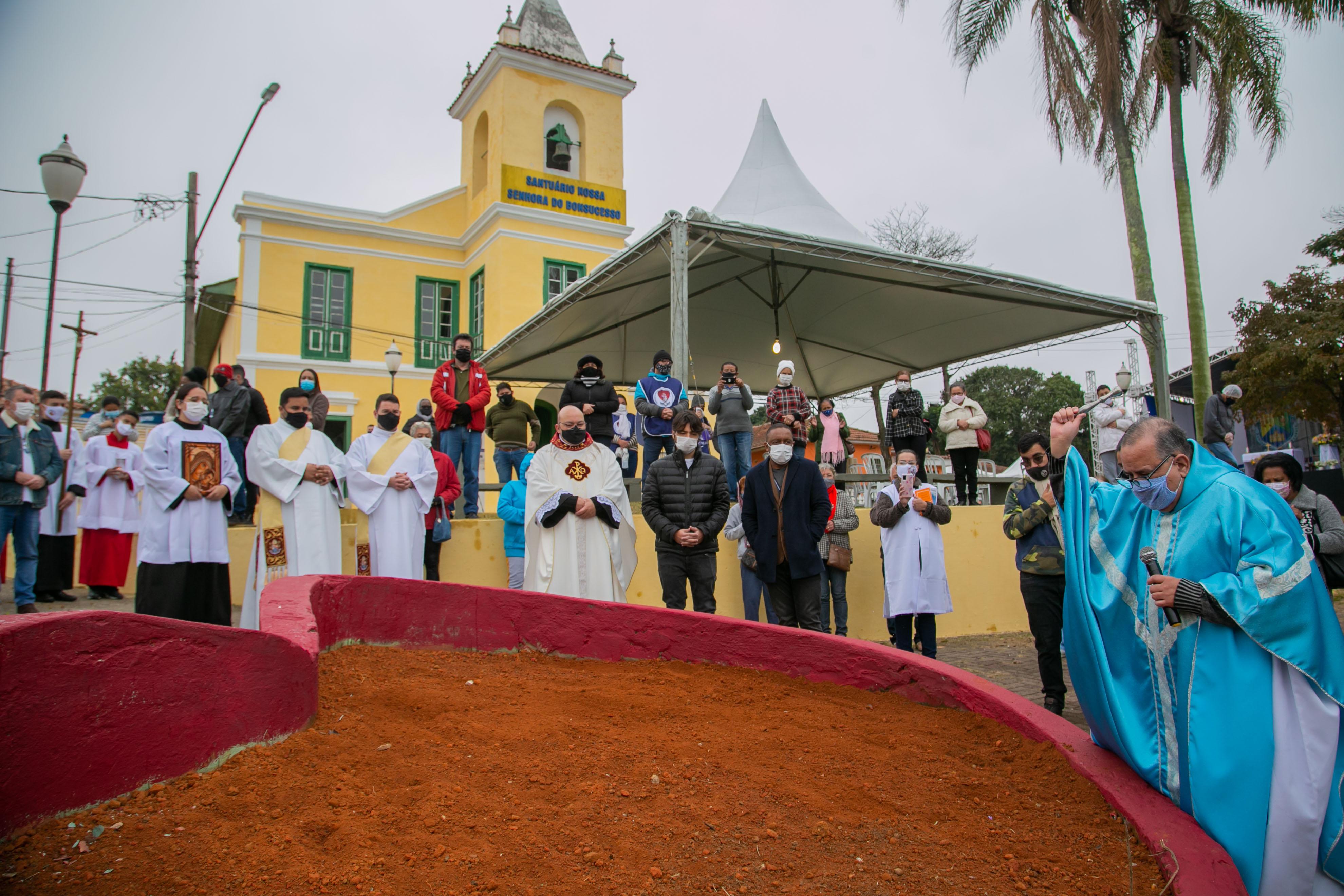 A bênção da terra durante a Festa da Carpição marcou o início das celebrações da 280ª Festa em Louvor a Nossa Senhora de Bonsucesso na manhã desta segunda-feira (2). Realizada em frente ao santuário, sem aglomerações, a missa celebrada pelo padre Renato Bernardes Duarte contou com a participação de devotos, do prefeito Guti e do vice-prefeito e secretário de Cultura, Professor Jesus.