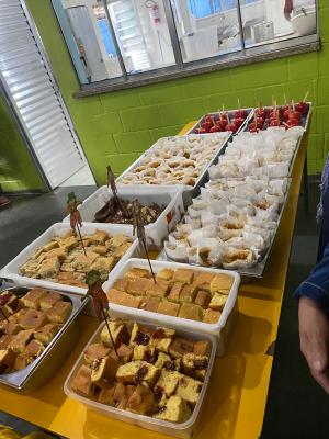 Além de músicas típicas, dança e muita alegria, a festa também contou com uma mesa recheada de comidas juninas como pamonha, curau, milho assado, pipoca, bolos e doces. Gincanas como pescaria e bola no copo, com direito a brinde, também fizeram parte da celebração.