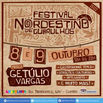 Guarulhos receberá no próximo fim de semana (dias 8 e 9) o Festival Nordestino, com muita comida típica e música. O evento acontecerá na praça Getúlio Vargas (Centro), das 12h às 22h, e contará com três apresentações culturais por dia, além de 14 barracas com alimentos como escondidinho e bolinho de macaxeira, tapioca, crepes, caldos diversos, moqueca, baião de dois, chips de macaxeira, favada e muito mais.