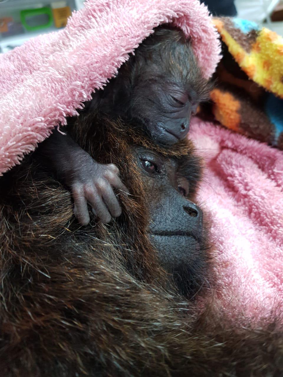 A equipe do Zoológico de Guarulhos comemora o nascimento de uma fêmea de bugio (macaco do gênero Alouatta), ocorrido às 17h dessa terça-feira (23). Após seis meses de gestação, a mãe, Elvira, entrou em trabalho de parto no final da tarde de segunda-feira (22). Com a demora excessiva para o nascimento bebê, que já apresentava sinais de sofrimento, os veterinários do zoo realizaram uma cesariana de emergência.