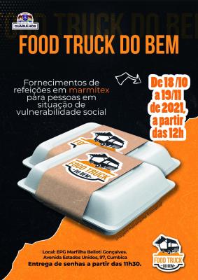O Food Truck do Bem, iniciativa da Secretaria de Desenvolvimento e Assistência Social de Guarulhos, estacionará na EPG Marfilha Belloti Gonçalves (avenida Estados Unidos, 97), em Cumbica, de 18 de outubro a 19 de novembro. Até o próximo dia 15 ele permanece no CEU São Rafael – rua Lázaro Pereira, 300, Itapegica. Em função do feriado, na próxima terça-feira (12) o Food Truck não irá funcionar.