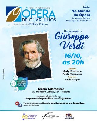Para dar continuidade ao 1º Festival de Ópera de Guarulhos, a Prefeitura apresenta neste sábado (16), às 20h, no Teatro Adamastor, espetáculo da Orquestra Jovem da série "No Mundo da Ópera", Gala Lírica em homenagem ao compositor italiano Giuseppe Verdi. Os ingressos são limitados a 300 lugares e estão disponíveis para retirada gratuita no site http://orquestrasdeguarulhos.com/. O concerto também será transmitido pelas redes sociais das orquestras no YouTube e no Facebook.