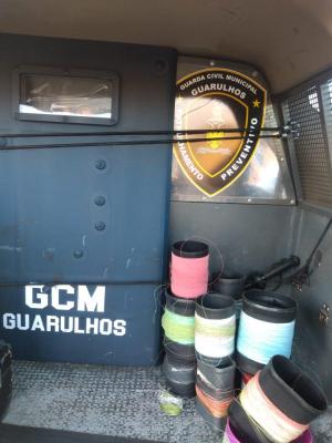 Agentes da Inspetoria Ambiental da Guarda Civil Municipal (GCM) de Guarulhos apreenderam carretéis de linha chilena e com cerol, materiais cortantes usados para empinar pipa, na tarde de domingo (27) no Jardim Diogo. A equipe estava em patrulhamento preventivo pela avenida Rio de Janeiro quando deparou com um grupo de jovens que utilizavam os produtos ilegais.