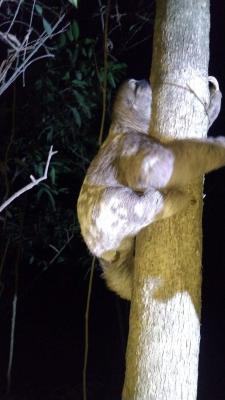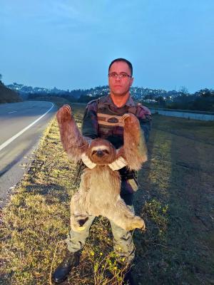 A Inspetoria Ambiental da Guarda Civil Municipal (GCM) de Guarulhos resgatou no início da noite desta terça-feira (13) uma preguiça-de-três-dedos (Bradipus variegatus) em situação de risco iminente de atropelamento e de ataque por cães na avenida Silvestre Pires de Freitas, próximo às obras do Rodoanel, no Jardim Paraíso.