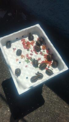 O patrulhamento ambiental da Guarda Civil Municipal (GCM) de Guarulhos apreendeu 14 filhotes de jabuti-piranga, de tamanhos entre 6 e 10 cm, expostos para comércio ilegal dentro de uma caixa de isopor em uma feira livre na manhã deste domingo (15) na avenida Norte Sul, no Conjunto Marcos Freire. Segundo apurado, o acusado pelo crime fugiu após olheiros não identificados o informarem sobre a chegada da viatura.