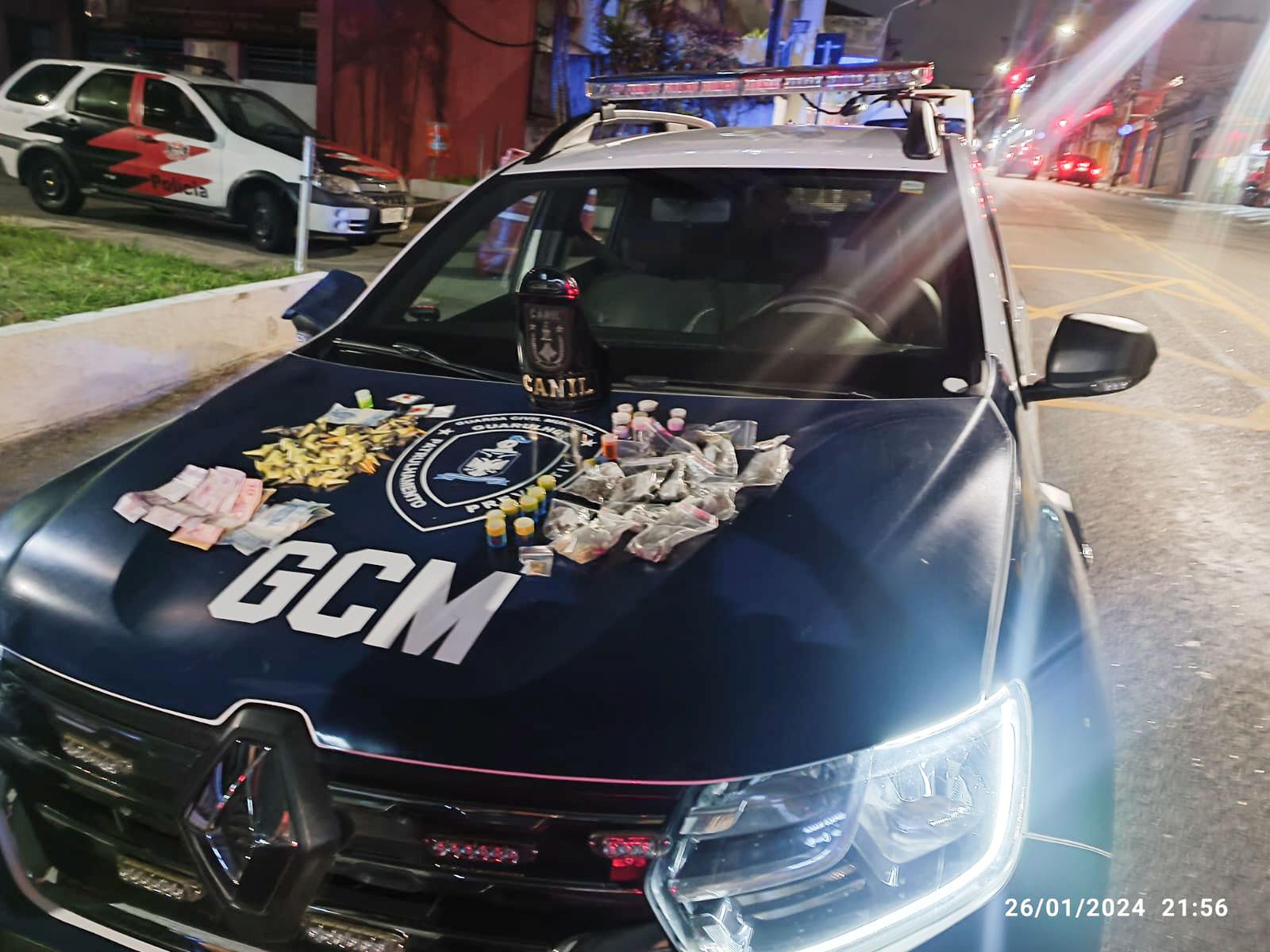 Agentes do Canil da Guarda Civil Municipal (GCM) de Guarulhos apreenderam 2 kg de entorpecentes e prenderam duas pessoas por tráfico de drogas em três ações distintas flagradas durante patrulhamentos preventivos pela cidade na sexta-feira (26) e no sábado (27).