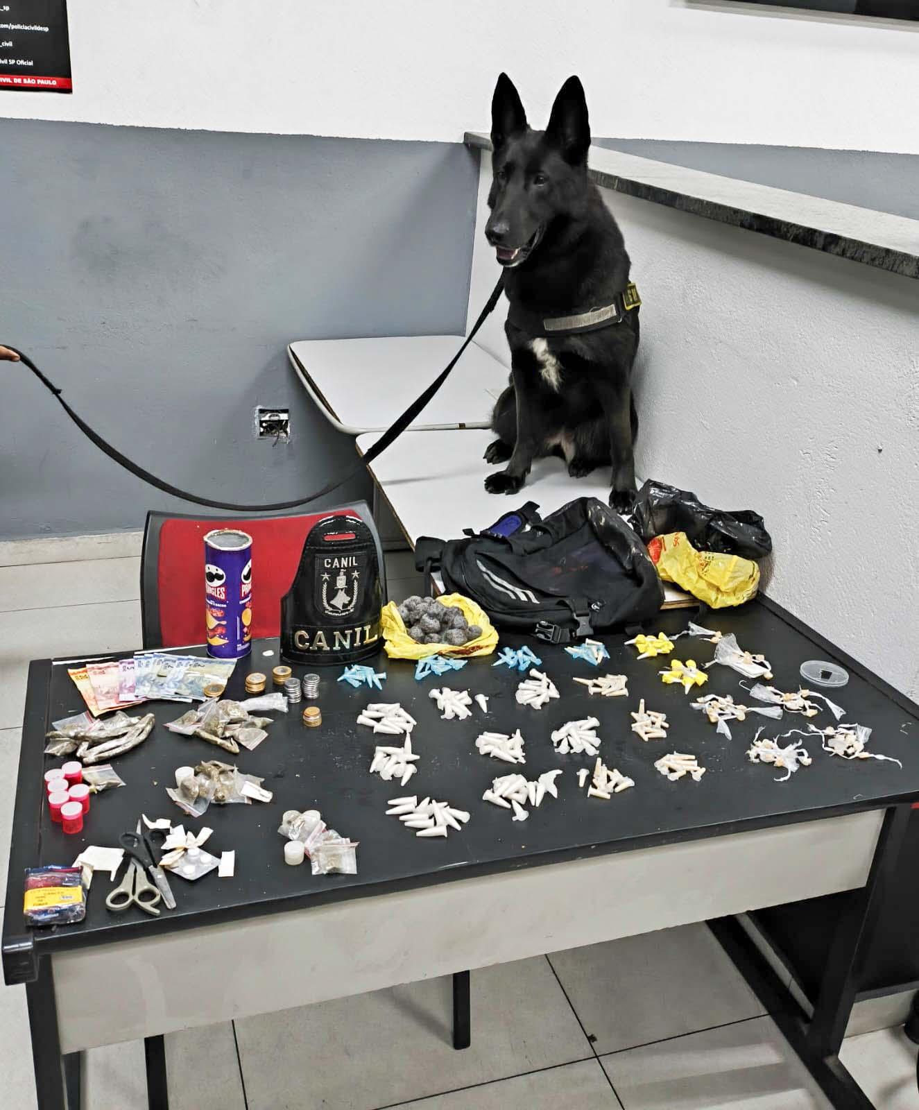Agentes do Canil da Guarda Civil Municipal (GCM) de Guarulhos apreenderam 280 porções de cocaína e maconha na noite de quinta-feira (10), no Jardim Santa Emília.