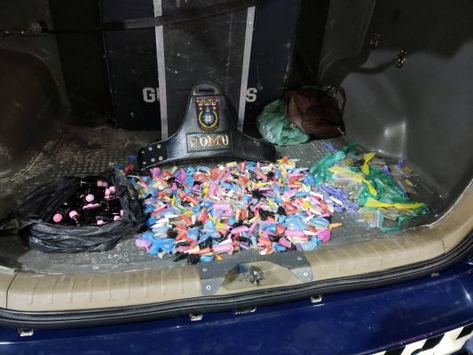 A Guarda Civil Municipal (GCM) de Guarulhos apreendeu 871 embalagens com entorpecentes em posse de um adolescente de 17 anos na noite da última sexta-feira (22) nas proximidades de escolas do Jardim Acácio. A equipe de patrulhamento tático rondava a área quando um indivíduo se assustou com a presença dos agentes, tentou fugir e dispensou uma sacola com as substâncias, mas foi interceptado.