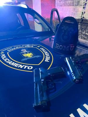 Na noite da última segunda-feira (2), agentes da Ronda Ostensiva Municipal (Romu), da Guarda Civil Municipal (GCM) de Guarulhos, apreenderam três adolescentes portando dois simulacros de arma de fogo durante patrulhamento preventivo na rua Santo Antônio, na região da Vila Galvão.