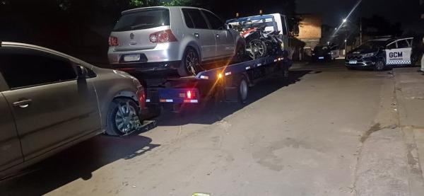 Na rua Onze, no Sítio São Francisco, três motocicletas e dois automóveis foram autuados, apreendidos e removidos ao pátio de recolhimento por irregularidades como licenciamentos vencidos e escapamentos adulterados.