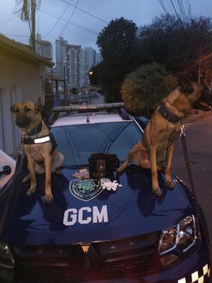 Por se tratar de região de mata, foi pedido o auxílio de cães farejadores. Os animais rapidamente localizaram uma pessoa que se encontrava escondida na área de posse de uma bolsa preta carregada de maconha.