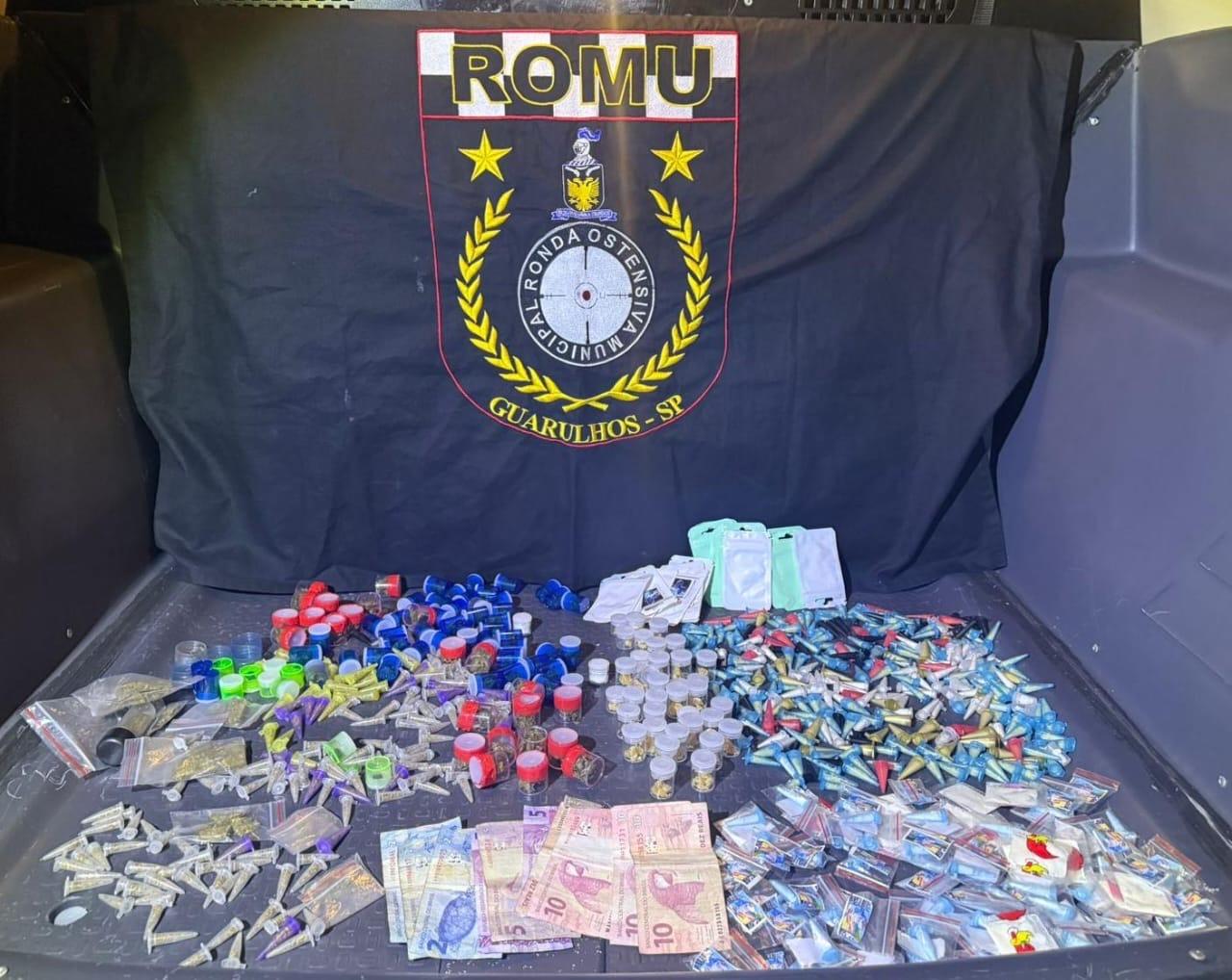 O combate ao tráfico de drogas segue implacável em Guarulhos. A GCM (Guarda Civil Municipal) prendeu dois traficantes e apreendeu 2 quilos de entorpecentes em ações distintas. No bairro Água Chata, agentes da Inspetoria Leste flagraram o criminoso com uma pochete contendo 448 porções de cocaína e 111 de maconha (cerca de 900 gramas). No Jardim São Paulo, o meliante tentou se desfazer de uma sacola com drogas, mas foi interceptado pelos guardas da Ronda Ostensiva (Romu). Dentro do material havia 460 porções de cocaína e 260 de maconha, totalizando 1,1 kg de entorpecentes, além de R$ 61 em dinheiro.