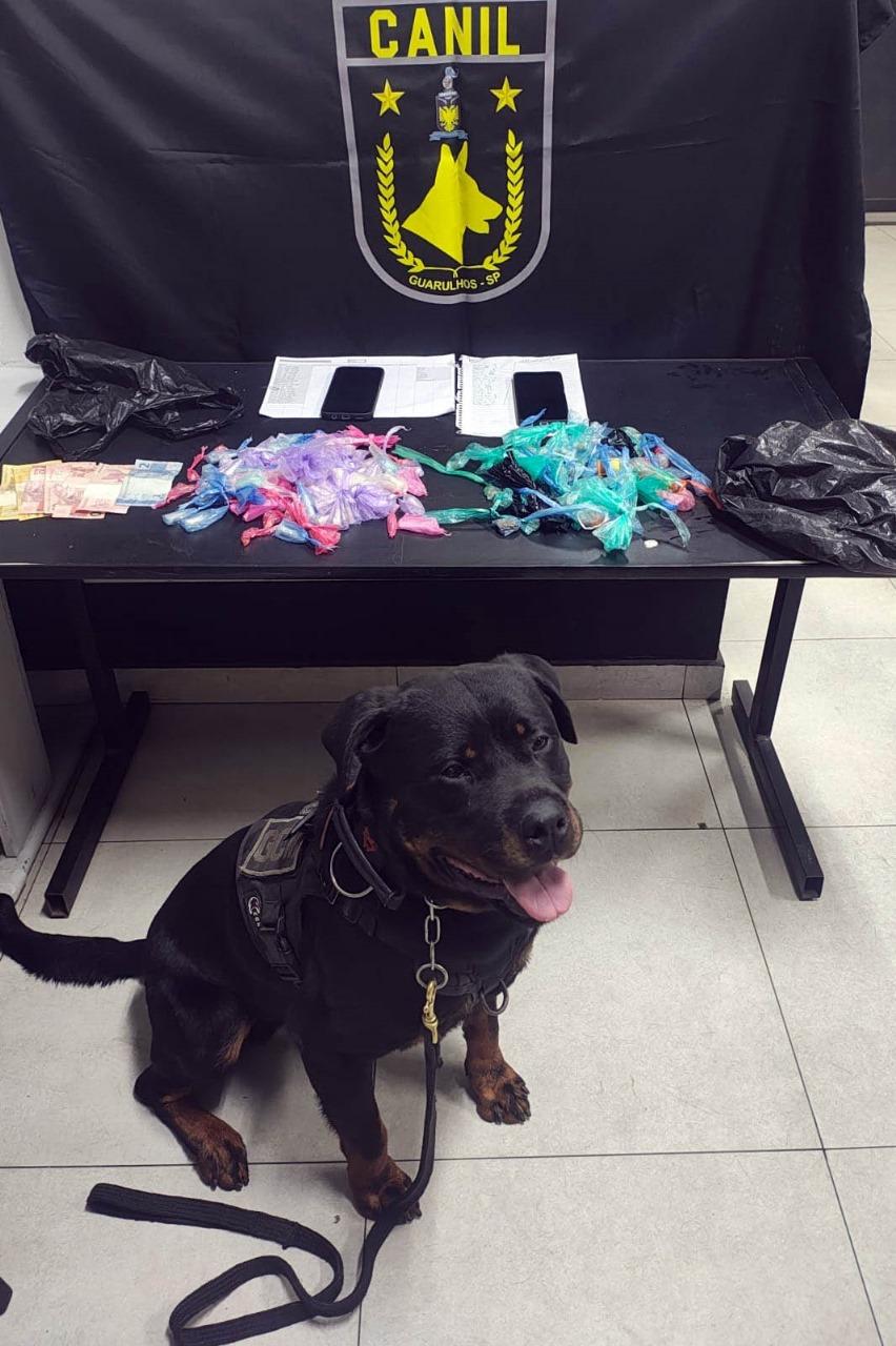 Agentes do Canil da Guarda Civil Municipal (GCM) de Guarulhos prenderam na noite de segunda-feira (6) dois traficantes, um deles foragido da Justiça, no Parque Primavera. A equipe localizou os criminosos na rua Andrômeda.