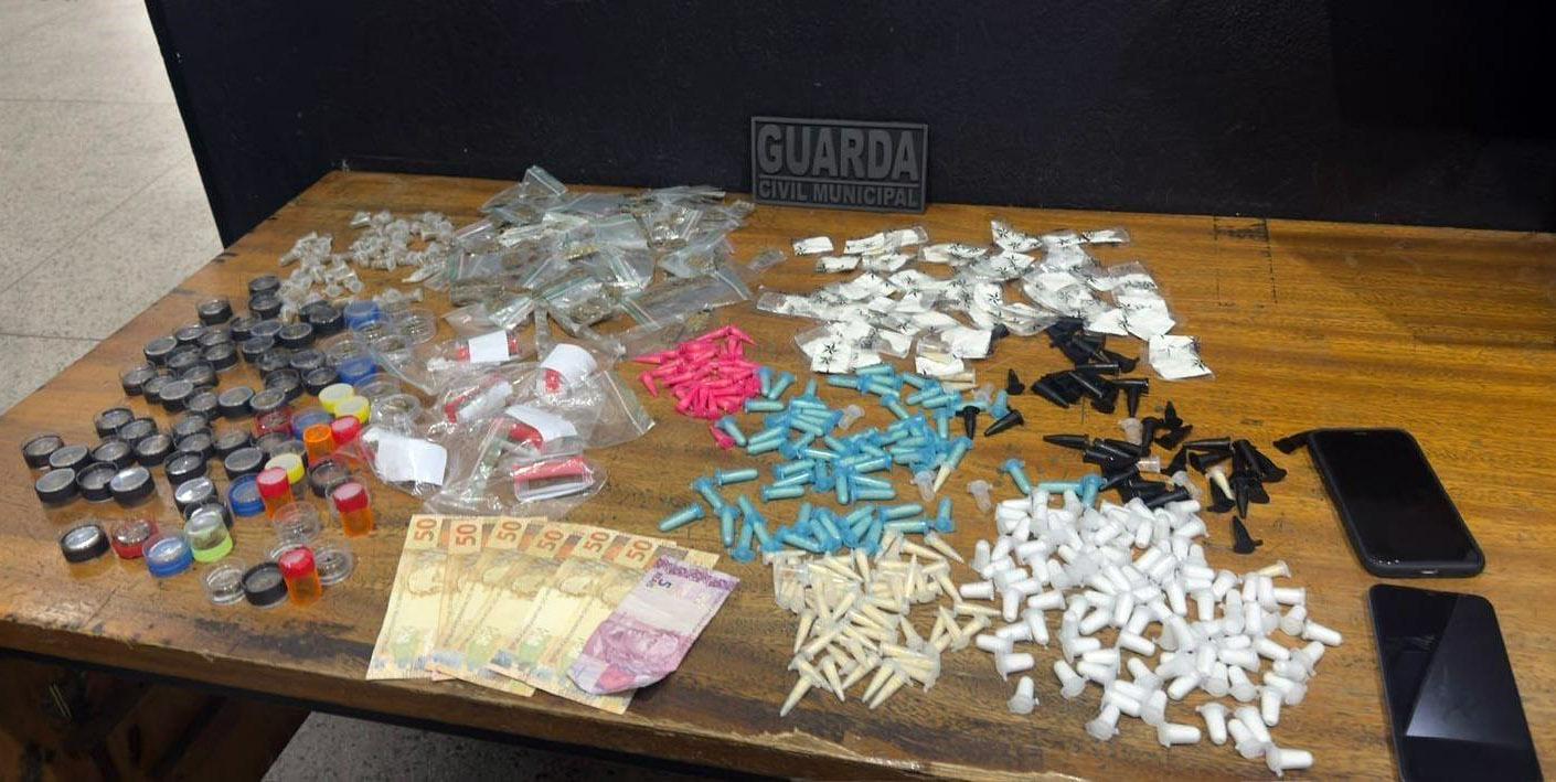 No Jardim Toscana, o Canil da GCM prendeu outro traficante com 800 gramas de entorpecentes na rua Tibério Iório. Os cães farejadores auxiliaram na localização de uma sacola contendo 316 porções de cocaína e 197 de maconha, além de R$ 82,00 em dinheiro.