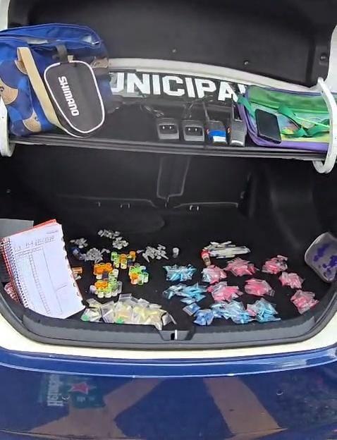 No bairro Cidade Jardim Cumbica, agentes da Inspetoria Norte realizava policiamento preventivo quando localizou duas mochilas contendo 538 porções de cocaína, 221 de maconha e 48 frascos de lança-perfume.