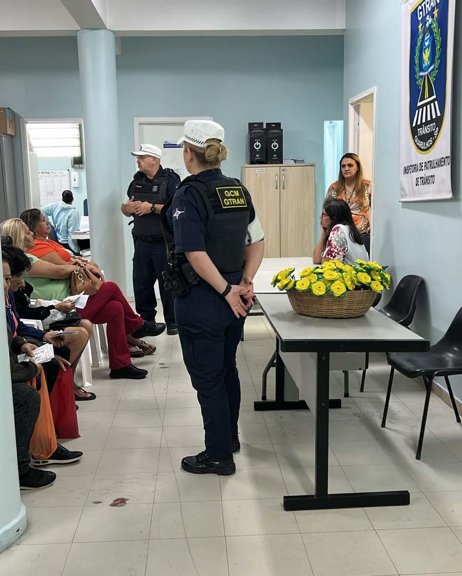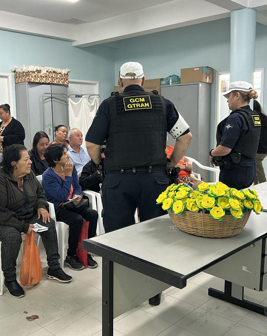 Em apoio ao movimento internacional Maio Amarelo, agentes da Inspetoria de Trânsito da Guarda Civil Municipal (GCM) de Guarulhos estão promovendo palestras educativas sobre trânsito seguro em diversos pontos da cidade. As ações fazem parte do projeto Gtran Educa e têm sido realizadas em escolas, unidades de saúde e empresas, com agendamento prévio.