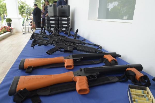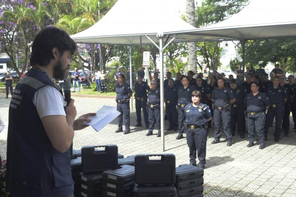 A Guarda Civil Municipal (GCM) de Guarulhos recebeu nesta quinta-feira (23), em solenidade no Paço Municipal, cerca de 72,2 mil novos equipamentos para o patrulhamento nas ruas, o controle de distúrbios e cursos de capacitação. São 60 mil munições para treinamento, 11 mil para operações e mil de borracha, nove viaturas, cem pistolas calibre .40, dois fuzis, 18 sprays de pimenta, 105 granadas de efeito moral e dois lançadores, além de uniformes para patrulhamentos com bicicletas e motocicletas.
