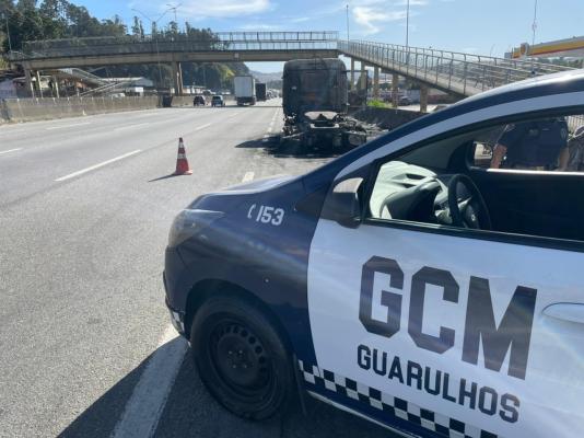 A Guarda Civil Municipal (GCM) de Guarulhos recuperou na manhã desta quarta-feira (6) partes de um caminhão que foram roubadas no município de Porto Feliz, no Estado de São Paulo, após agentes averiguarem dois semirreboques (cargas independentes que precisam de reboque para serem levados ao veículo) estacionados na avenida Doutor Timóteo Penteado e constatar que eram produtos de roubo. Em seguida, na rodovia Fernão Dias, foi encontrado, queimado no acostamento, o conjunto de cabine, motor e rodas.