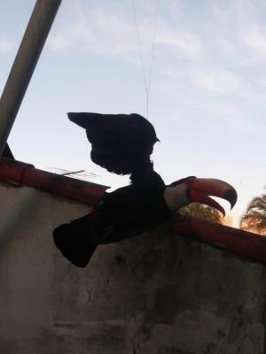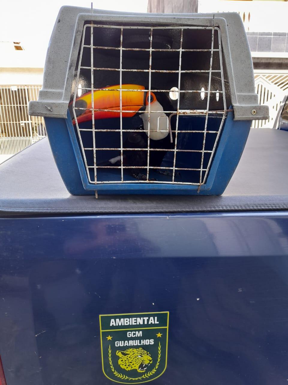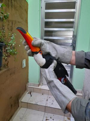 A Inspetoria Ambiental da Guarda Civil Municipal (GCM) de Guarulhos resgatou na manhã desta sexta-feira (8) um tucano-toco que se debatia envolto em linhas de pipa com cerol no quintal de uma residência na rua Marcelino Petito, Vila Carioca, após acionamento pelo morador. Com cuidados especializados, os agentes conseguiram resgatar a ave e acondicioná-la em uma caixa de transporte adequada para levá-la ao Zoológico Municipal.