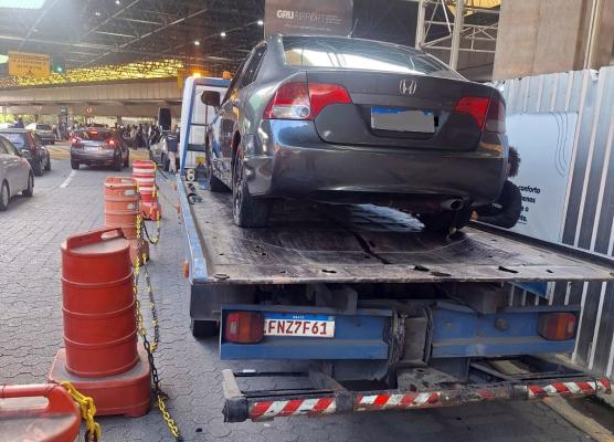 Na manhã desta quarta-feira (18) agentes da Inspetoria de Trânsito da GCM apreenderam quatro veículos nos terminais de embarque e desembarque do aeroporto internacional de Guarulhos. Os condutores foram flagrados oferecendo serviços de transporte não autorizado pelo poder público aos passageiros, em desacordo com o decreto municipal 35.617/2019.