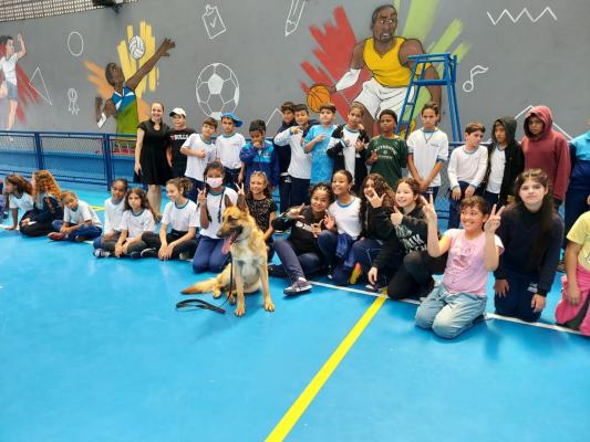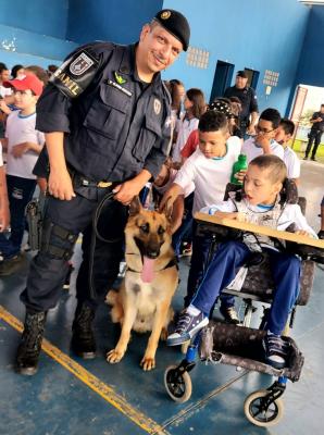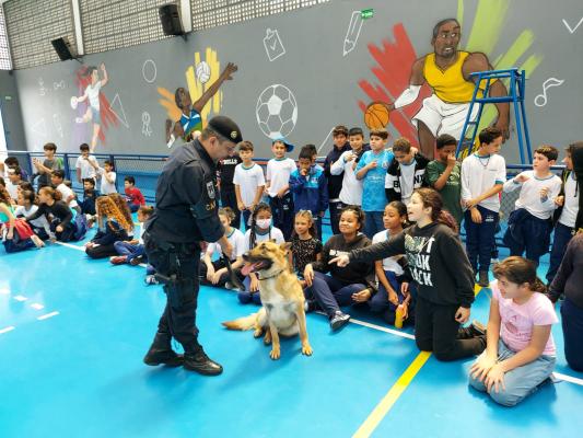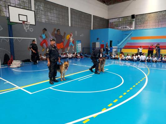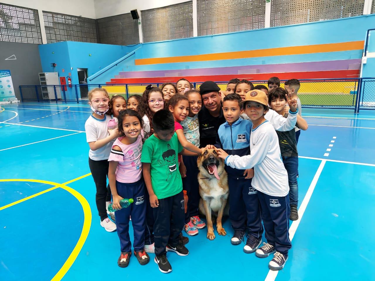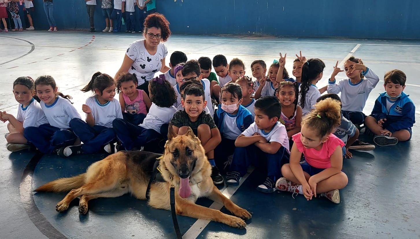 As Escolas da Prefeitura de Guarulhos (EPGs) Valter Efigênio e Manoel Bonfim participaram na última semana de atividades educativas e de integração com agentes e o cão policial Thanos da Guarda Civil Municipal (GCM). Após uma demonstração das habilidades e truques do pastor alemão capa preta, nascido e treinado na Inspetoria de Patrulhamento com Cães, as crianças e professores ouviram relatos de ocorrências que marcaram a trajetória do setor e uma palestra sobre o uso de drogas.