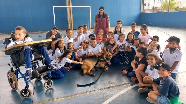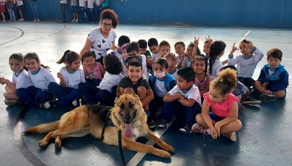 Segundo a inspetora de patrulhamento com cães, Marta Aparecida, a presença dos animais desperta a curiosidade das crianças para as lições repassadas. “Os pequenos ficam encantados com os cães que, apesar de serem treinados para o enfrentamento à violência e à criminalidade, também são dóceis e obedientes”, explica.