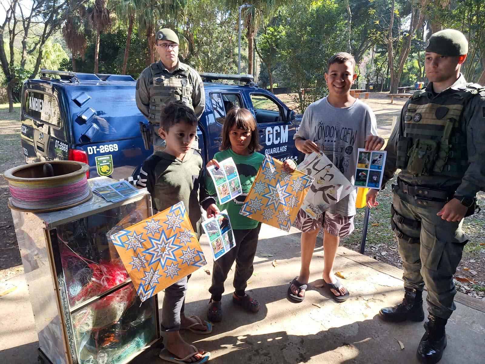 Agentes da Inspetoria Ambiental da Guarda Civil Municipal (GCM) de Guarulhos desenvolveram na manhã desta quarta-feira (23) atividades educativas com crianças no Zoológico Municipal. O objetivo foi aproveitar as férias escolares para conscientizar sobre os riscos de empinar pipas com linhas cortantes com cerol e chilena.