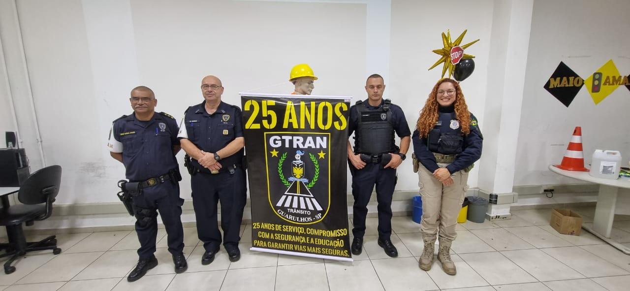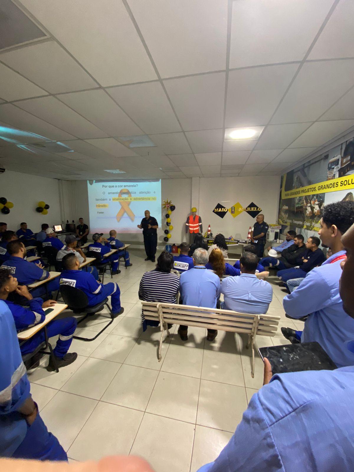 Agentes da Inspetoria de Trânsito da Guarda Civil Municipal (GCM) de Guarulhos e da Polícia Rodoviária Federal (PRF) fizeram palestras sobre o Maio Amarelo nesta quinta-feira (23) para 130 funcionários de uma empresa de transportes em Cumbica, com atividades de conscientização para a redução de mortos e feridos nas vias da cidade.