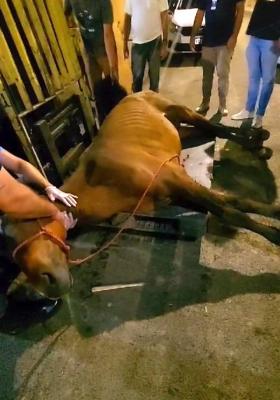 Um cavalo ferido, caído e debilitado foi resgatado por agentes da Guarda Civil Municipal (GCM) e do Departamento de Proteção Animal (DPAN) de Guarulhos na noite desta segunda-feira (4) na avenida Martins Júnior, no Jardim Bela Vista. Após receber medicação e alimentação, o cavalo foi recolhido pelas equipes e encaminhado provisoriamente a um galpão nas imediações.