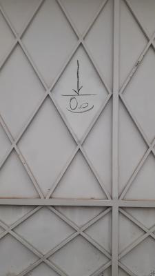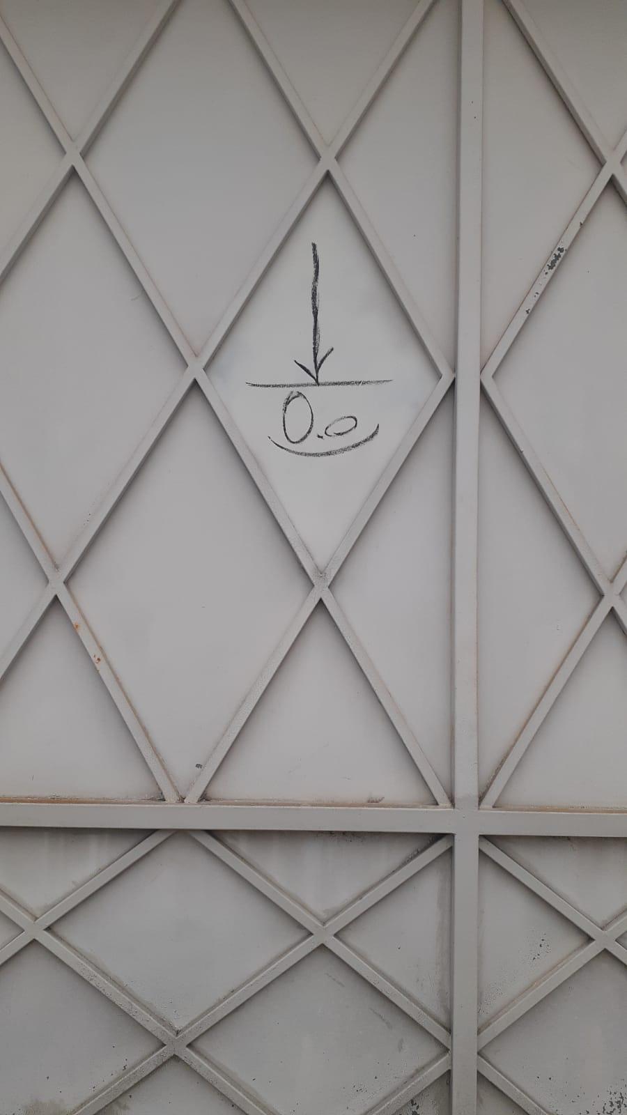 O portão da casa, que está desocupada e disponível para locação, estava pichado com símbolos que têm sido utilizados para a comunicação de grupos de assaltantes. Os desenhos costumam ser compostos por setas, números e círculos, e apontam os períodos em que as casas ficam vazias, se há fácil acesso, as temporadas em que os moradores saem de férias e se crianças e idosos ficam sozinhos no local.