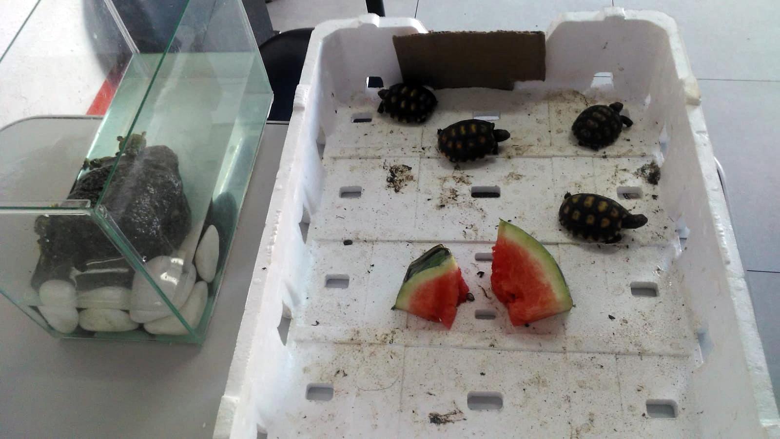 Oito filhotes de tartaruga que estavam expostos para venda ilegal em uma feira livre no Jardim Lenize foram apreendidos pela Guarda Civil Municipal (GCM) de Guarulhos na tarde deste domingo (3), após denúncia para a Central de Atendimento 153. Durante a averiguação foi constatado que os filhotes não eram originários de criadouros ou estabelecimentos comerciais autorizados pelo Ibama ou órgãos estaduais competentes.