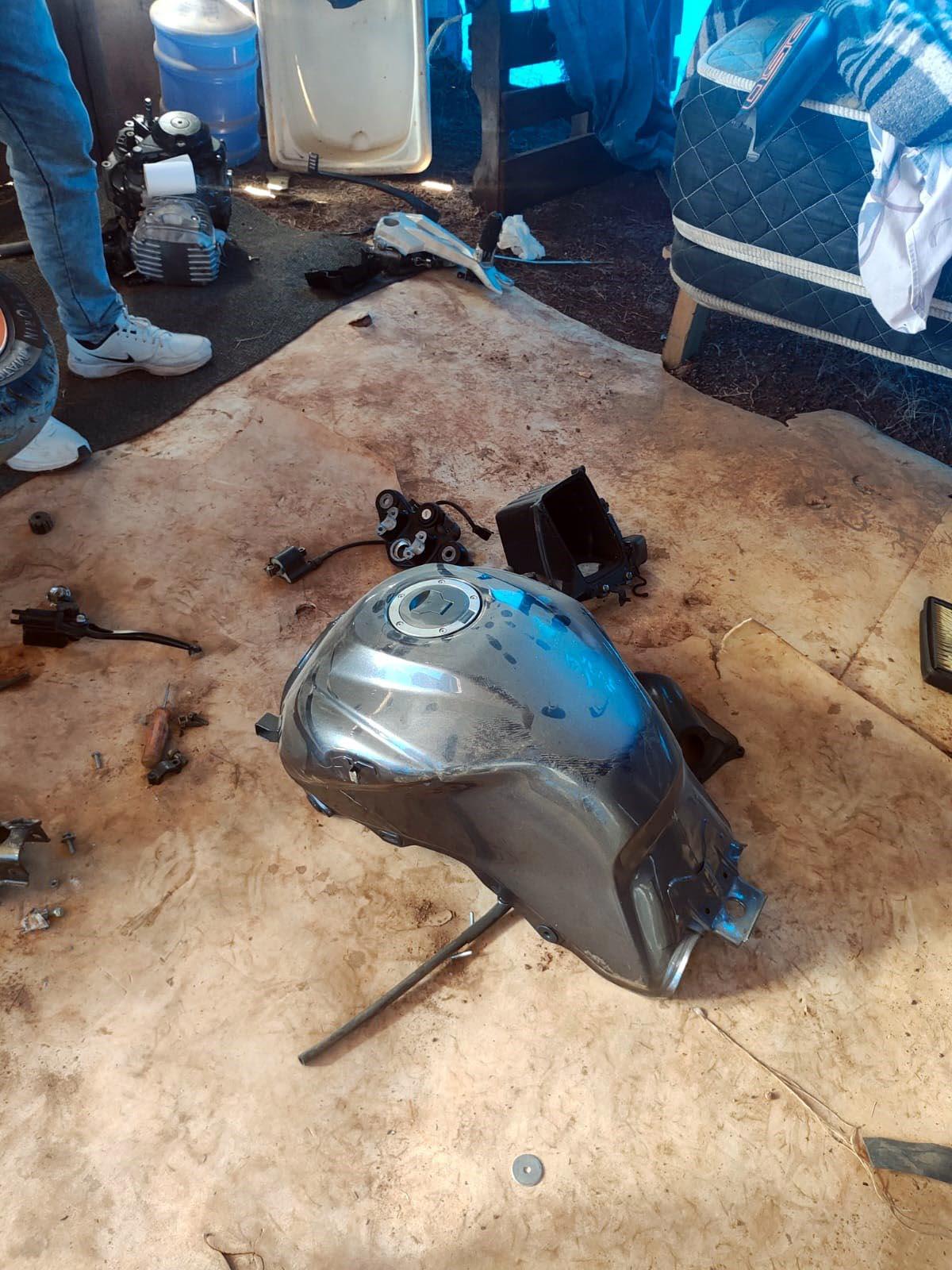 A Guarda Civil Municipal (GCM) de Guarulhos localizou na tarde de sábado (4) uma motocicleta Honda CB 250 F Twister, ano 2021, sem emplacamento, além de dez peças e partes diversas de outras motocicletas após receber uma denúncia de desmanche em um barraco na avenida Luiz Gonzaga do Nascimento, no Jardim Ponte Alta II.