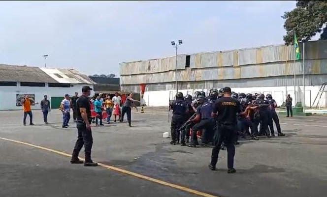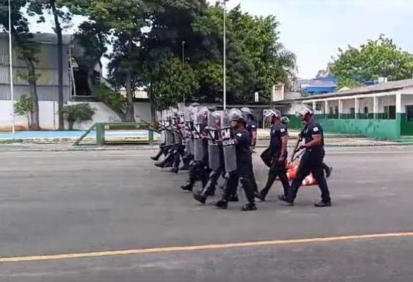 Agentes da Ronda Ostensiva (Romu) da Guarda Civil Municipal (GCM) de Guarulhos aplicaram treinamento de controle de distúrbios civis nesta quinta-feira (11), na base militar do Tiro de Guerra, aos 41 GCMs recém-formados na cidade por meio de um convênio assinado entre as prefeituras.