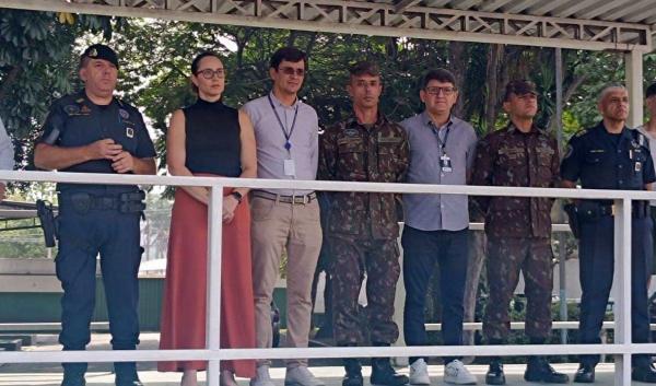 O treinamento foi acompanhado pelos secretários de segurança das duas cidades, Pontes e Michele Zanini, além do subtenente Helbis Tomaz, do subcomandante-geral da GCM, Ricardo Gentil, do inspetor-geral e comandante da Romu, Fábio Lemos, e do chefe da Efag, Tadeu Corrêa.