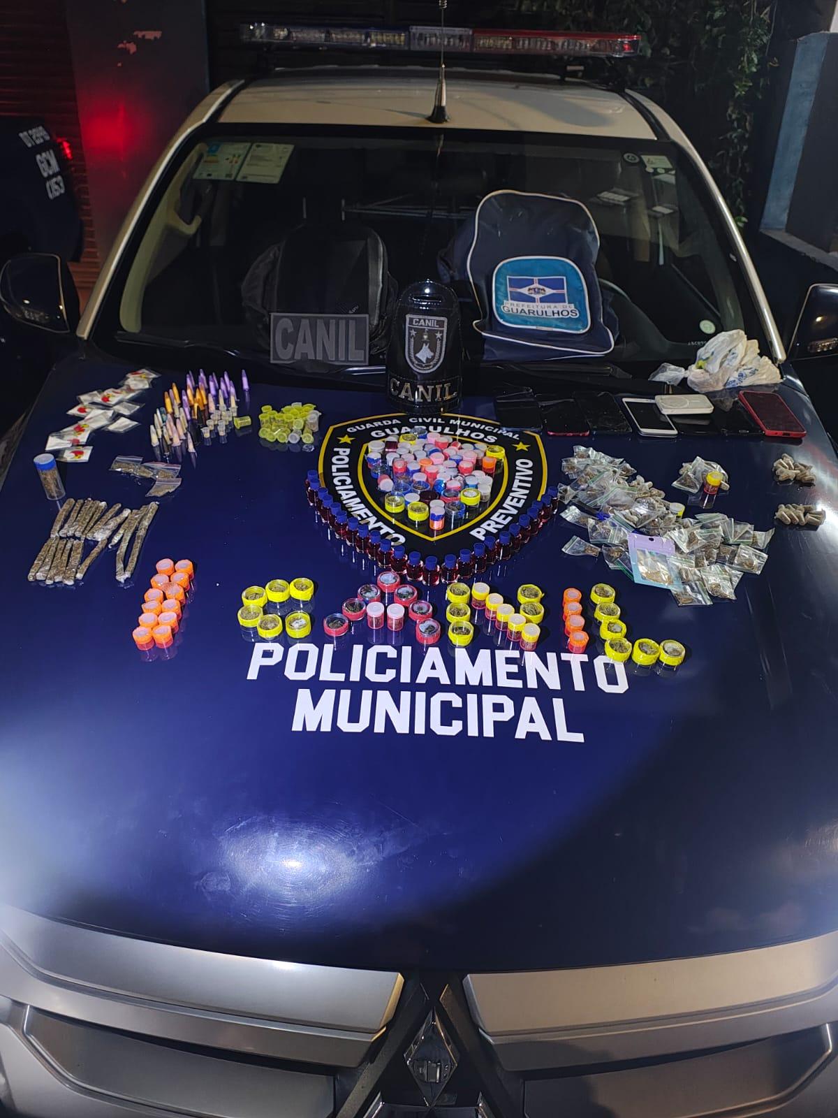 Mais de 5 kg de drogas deixaram de circular em Guarulhos graças à atuação da GCM (Guarda Civil Municipal) em duas ocorrências. No Jardim Ansalca, agentes do Canil da GCM localizaram uma mochila contendo 960 gramas de entorpecentes, divididos em 226 porções de maconha e 101 de cocaína, além de 38 frascos de lança-perfume e sete aparelhos celulares.