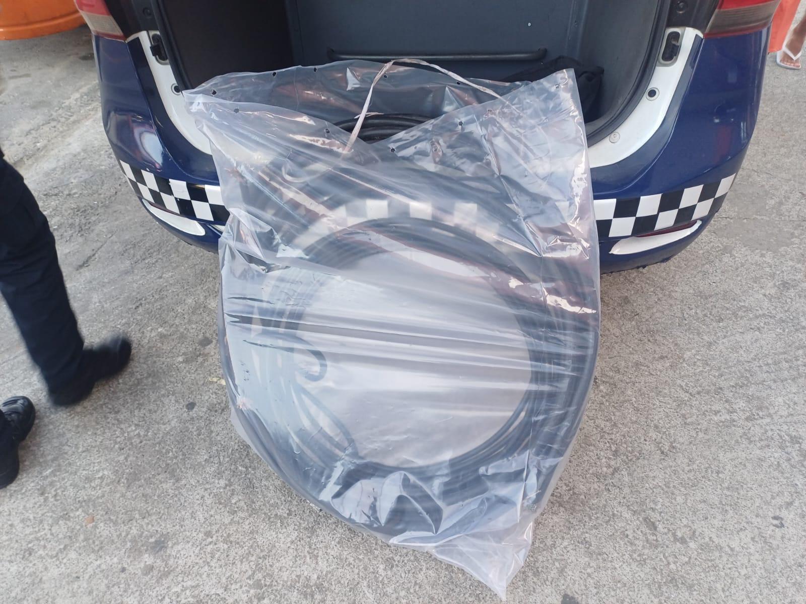A Central de Atendimento 153 acionou uma equipe da GCM após as câmeras de monitoramento da Secretaria de Transportes e Mobilidade Urbana (STMU) flagrarem os suspeitos em ação criminosa. Com base nas imagens e nas características dos indivíduos, a equipe da Coordenadoria Operacional chegou rapidamente ao local e localizou os dois homens nas imediações, ainda com a fiação furtada — cerca de 50 metros — e uma mochila contendo alicate, lâmina e faca de serra utilizadas no corte dos cabos.