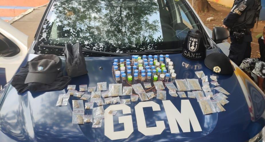 Agentes do Canil da Guarda Civil Municipal (GCM) de Guarulhos prenderam dois homens nesta quinta-feira (16) acusados de tráfico de entorpecentes na avenida Maria Cerri, Jardim Divinolândia.
