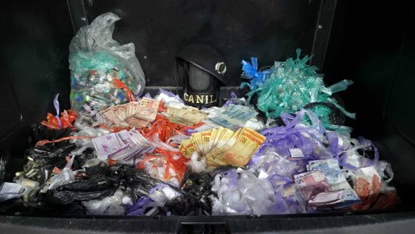 Agentes do Canil da Guarda Civil Municipal (GCM) de Guarulhos prenderam duas mulheres durante policiamento preventivo no sábado (12) pela rua Serra Azul, na Vila Carmela I. A equipe avistou as duas em atitude suspeita em área de mata, as quais tentaram fugir, mas foram alcançadas. Com elas, uma sacola contendo dinheiro e substâncias ilícitas embaladas para comercialização.