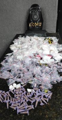 No interior do recipiente apreendido havia substâncias embaladas para o comércio ilícito, além de 106 reais em dinheiro. O homem e os materiais foram apresentados à autoridade de plantão no 1º Distrito Policial, que requisitou perícia nas substâncias, cujo laudo positivou para 776 embalagens contendo cocaína e outras 68 com maconha.