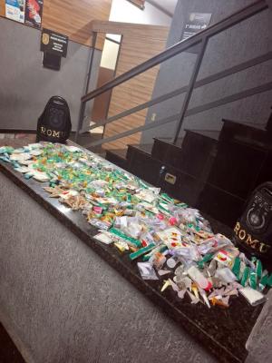 Após a revista, o homem e os materiais apreendidos foram encaminhados ao 1° Distrito Policial (avenida Monteiro Lobato, 244 - Centro). A autoridade de plantão requisitou perícia técnica, cujo laudo positivou para 1,3 kg de entorpecentes distribuídos em 657 embalagens contendo cocaína e outras 277 com maconha. Em seguida, a autoridade ratificou a prisão em flagrante, lavrando boletim de ocorrência por tráfico de entorpecentes.