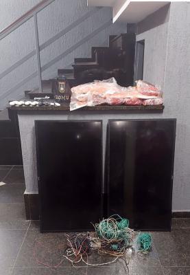 Os agentes depararam com um indivíduo escondido nos fundos da casa. Ao seu lado estavam dois aparelhos televisores de 42 polegadas, embalagens com carnes e peixes congelados, facas e outros utensílios. O proprietário do imóvel, que permitiu a entrada da equipe para a averiguação, não reconheceu os produtos, o que evidenciou que a casa poderia ter sido invadida devido ao acesso facilitado ao restaurante.