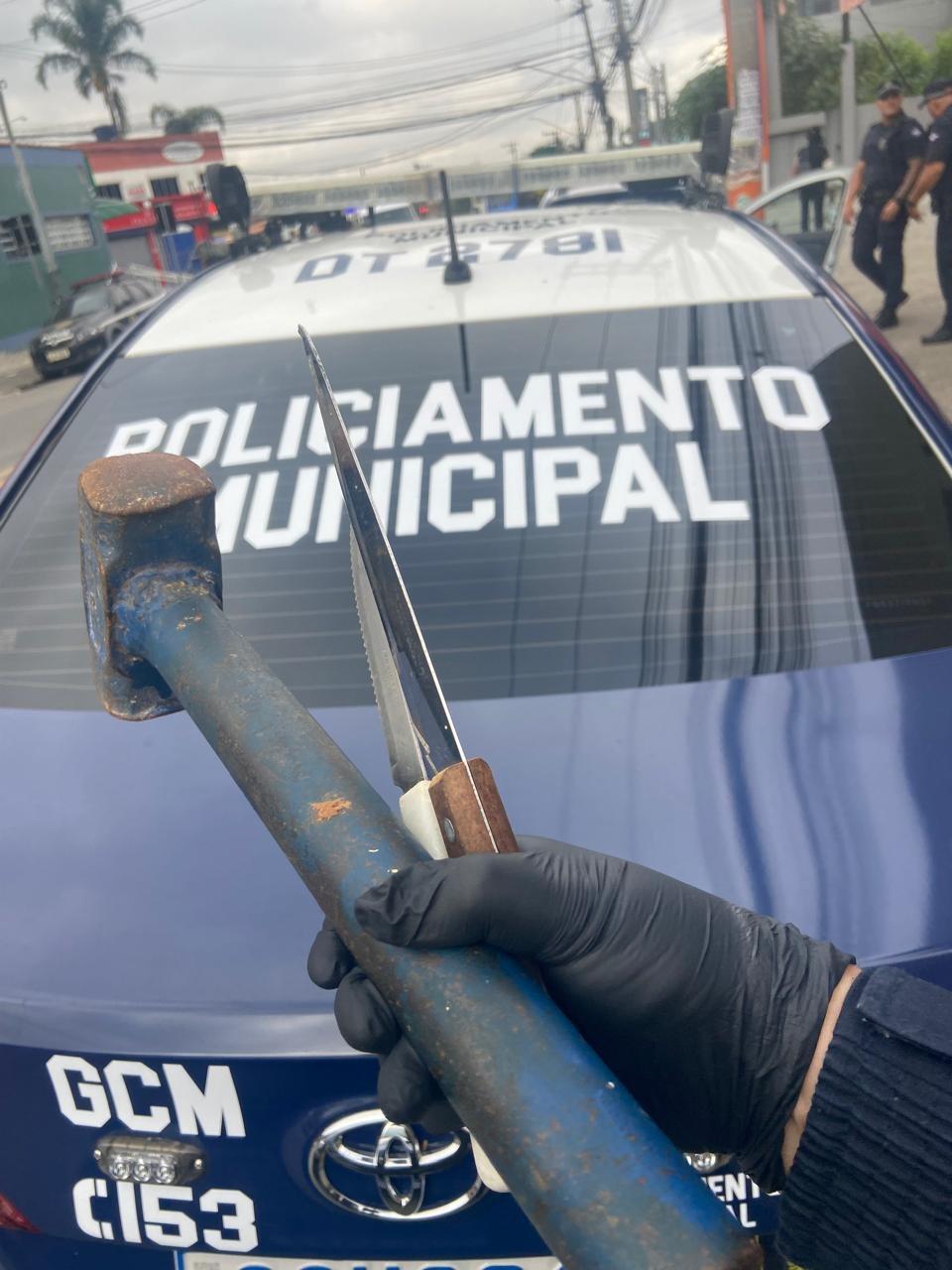 Em entrevista com a mulher, ela informou sobre as agressões e ameaças sofridas, inclusive com o uso de uma marreta e facas. Com as características do acusado e o apoio de GCMs do policiamento de área, os agentes conseguiram deter o agressor nas imediações do bairro. Ele ofereceu resistência e precisou ser conduzido algemado à delegacia de polícia.
