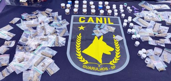 Agentes do Canil da Guarda Civil Municipal (GCM) de Guarulhos prenderam um homem nesta segunda-feira (22) por tráfico de entorpecentes na rua Maria Cerri, Jardim Divinolândia. A equipe em patrulhamento preventivo pela região deparou com o acusado, que carregava uma sacola plástica nas mãos. Ao avistar a viatura ele tentou escondê-la e sair correndo, mas foi interceptado.