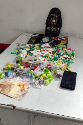 O acusado foi avistado por volta das 3h e tentou fugir, mas foi interceptado para averiguação com uma pochete contendo 116 reais em dinheiro e as substâncias, que passaram por uma perícia técnica no 7º Distrito Policial (DP).