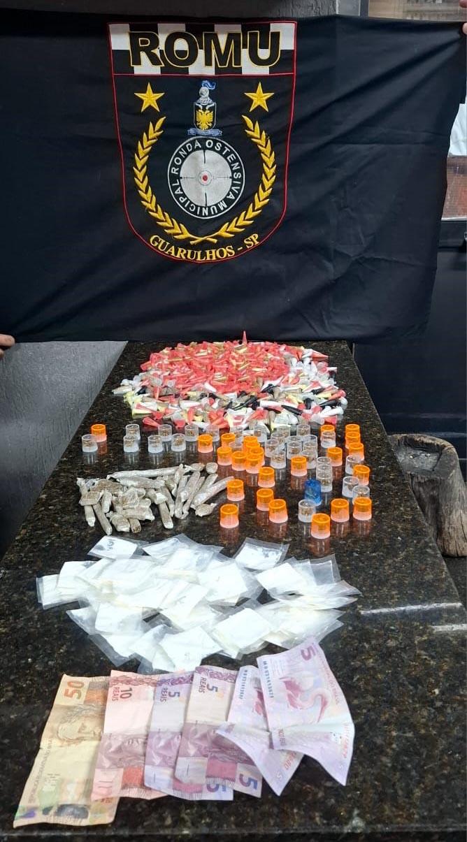 Agentes da Inspetoria Leste da Guarda Civil Municipal (GCM) de Guarulhos prenderam três traficantes na manhã de quinta-feira (19), nos bairros Parque Jandaia e Água Chata.