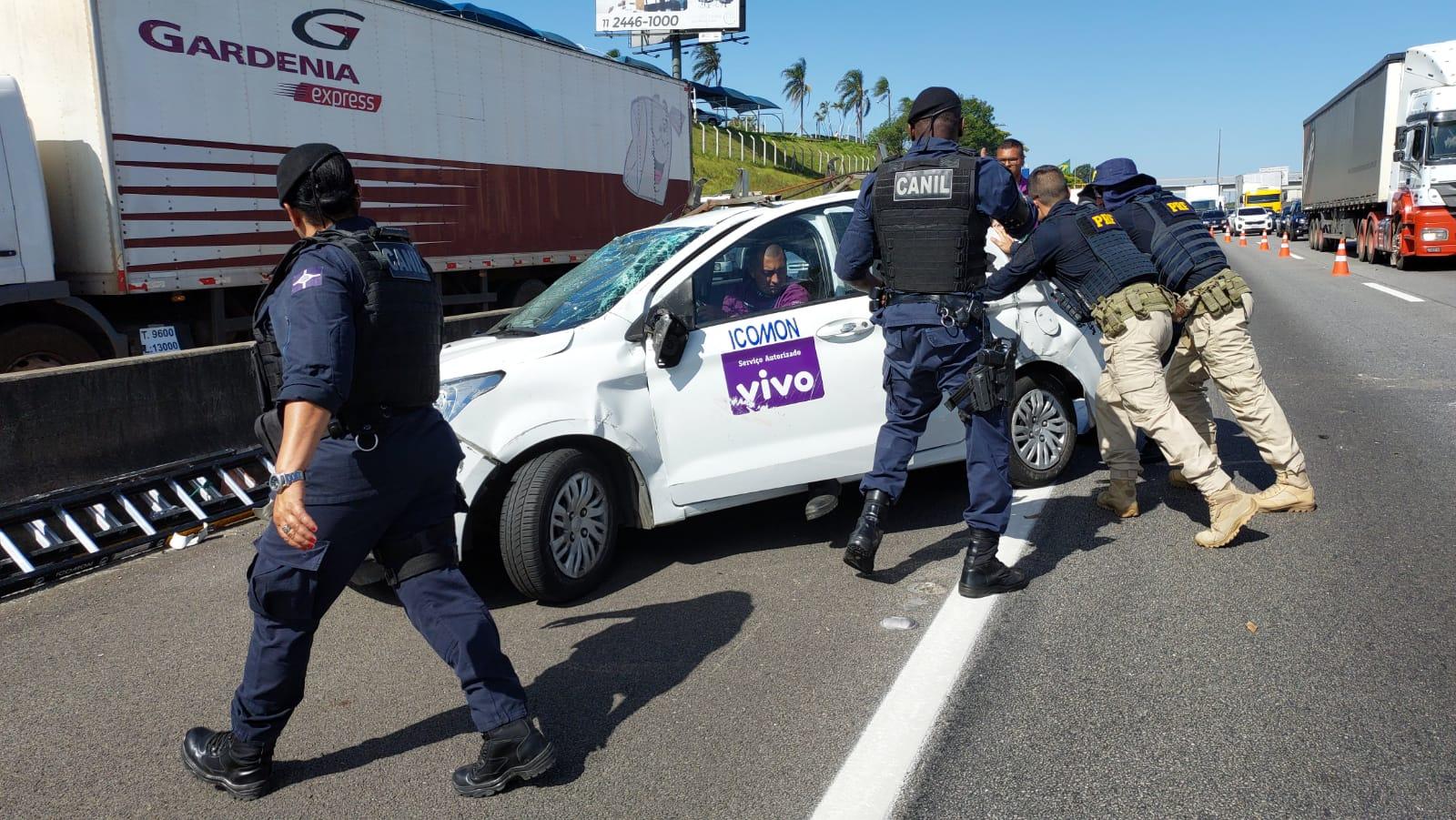 A Guarda Civil Municipal (GCM) de Guarulhos prestou socorro em um capotamento de carro com duas vítimas na altura do km 218 da rodovia Presidente Dutra na última sexta-feira (18). Os dois homens estavam no mesmo veículo, um Ford Ka branco, quando o motorista perdeu o controle e bateu na proteção que divide as pistas. Não estavam alcoolizados e sofreram apenas arranhões.