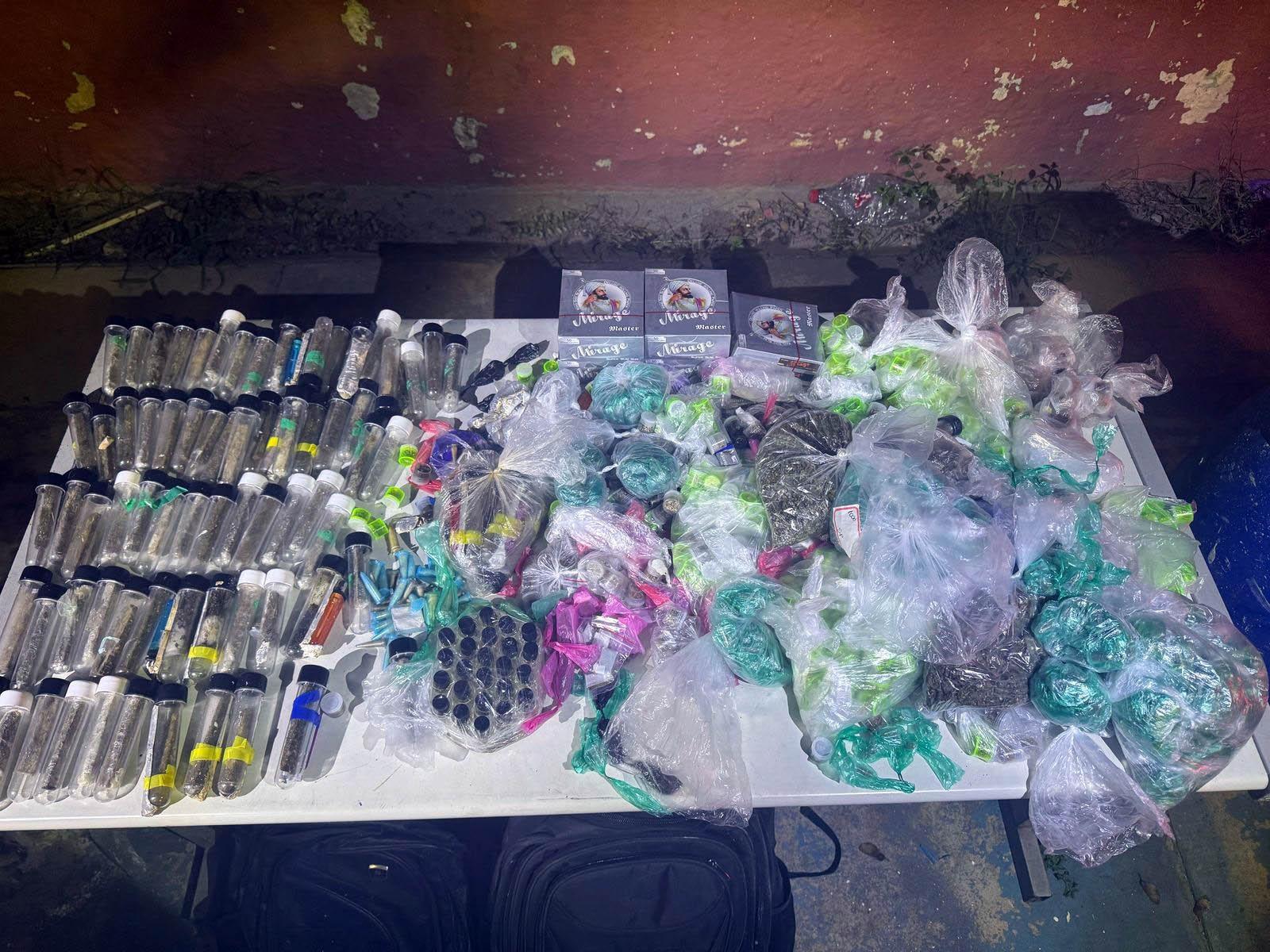 O laudo contabilizou um total de 75,1 kg das seguintes substâncias entorpecentes: 10.700 embalagens prontas para comercialização ilegal contendo cocaína e outras 15.060 com maconha; 15 kg de maconha em tijolos com 1 kg cada; 2,1 kg de Skank; 4,3 kg de pasta base de cocaína; 3,5 kg de crack e 120 frascos de lança-perfume.
